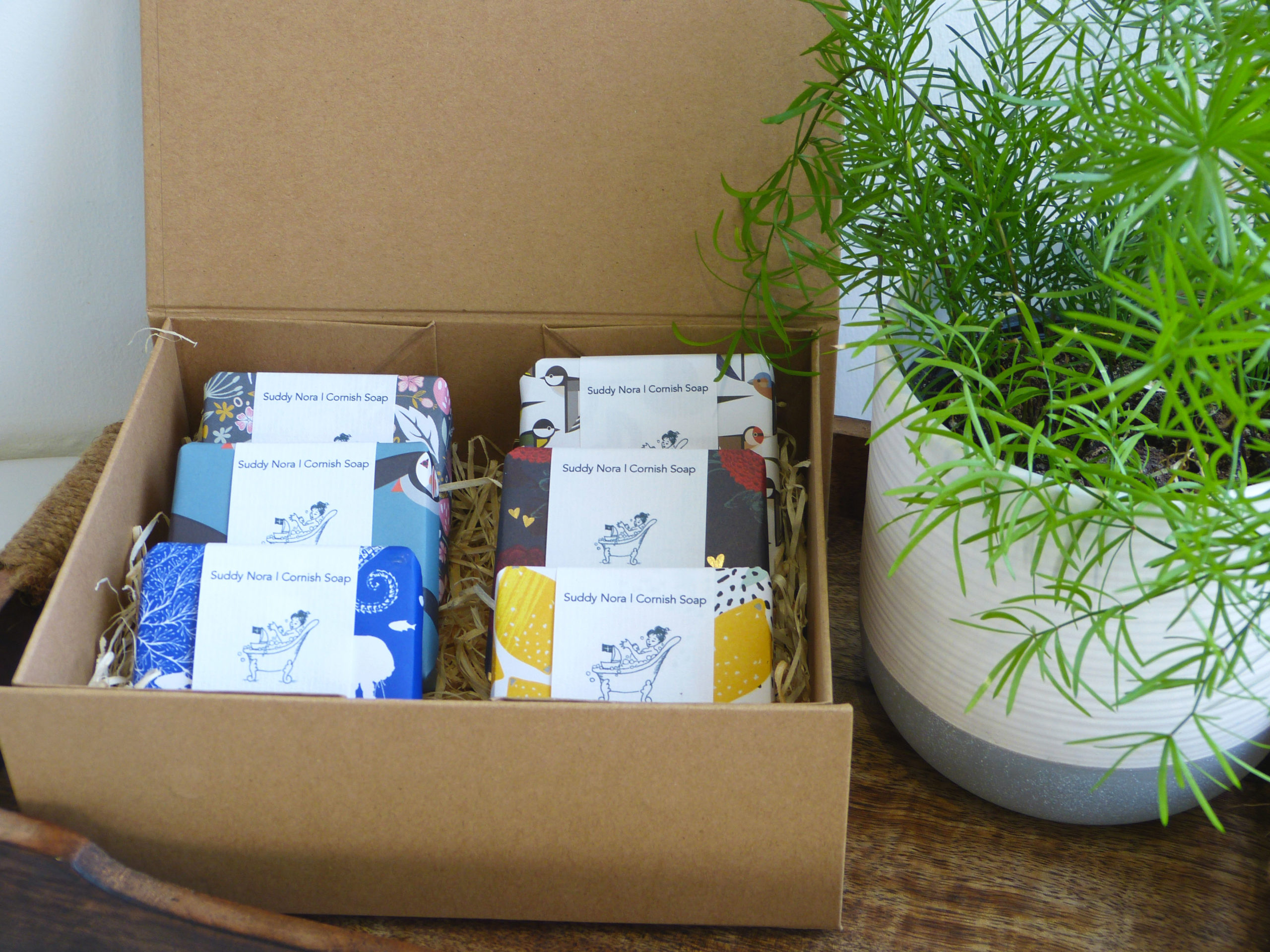 The finest selection of luxury soaps. Six of our gorgeous large handmade soaps beautifully packaged in our superior grey large gift box. Each soap is lovingly handmade in small batches in our Cornish workshop. We only use the finest natural ingredients. We do not use Parabens, SLS or plastics.